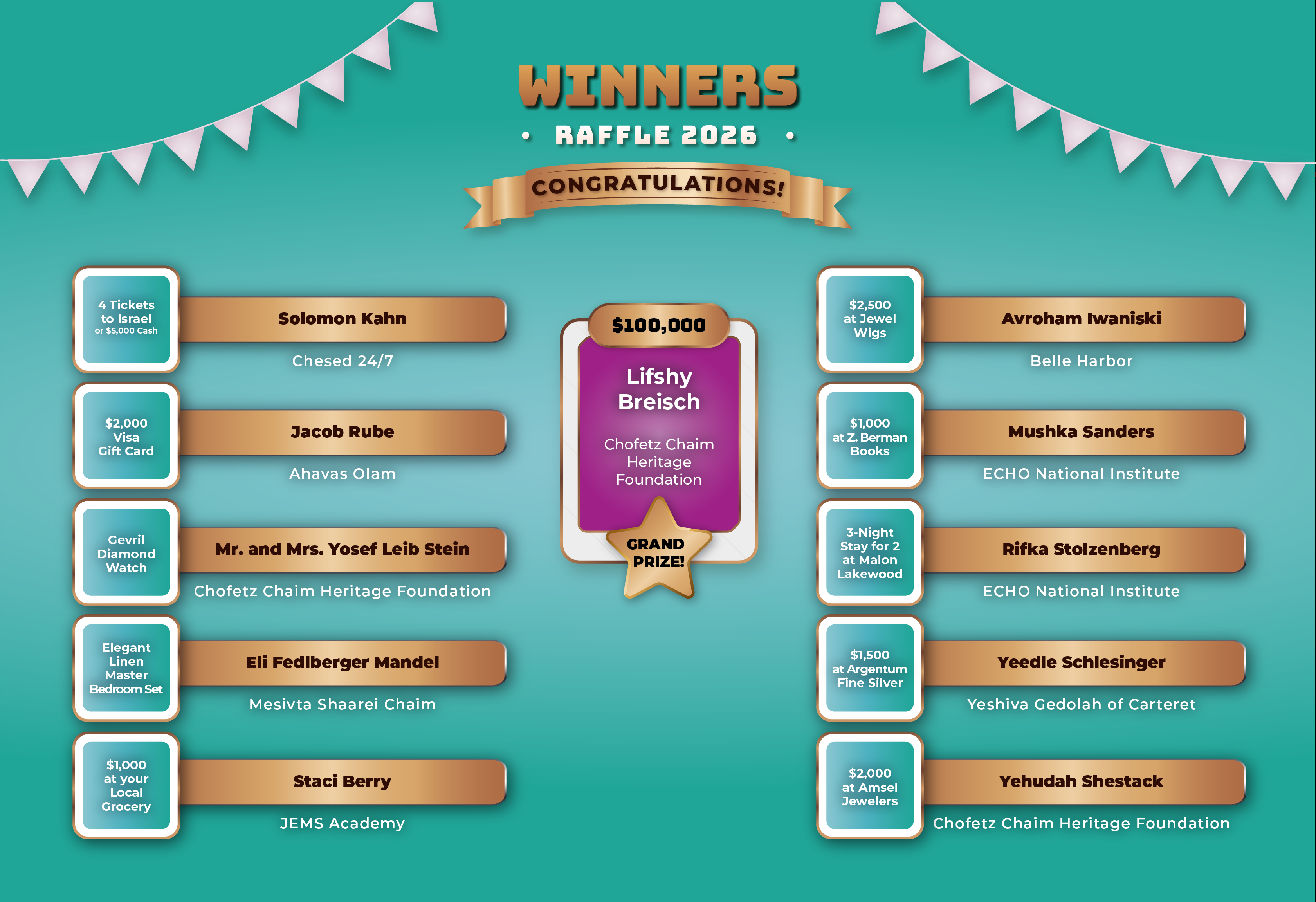 MAZAL TOV TO THE RAFFLE WINNERS!